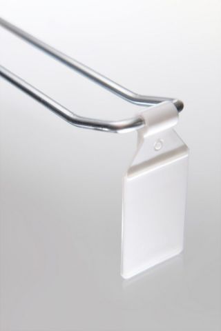 Bewegliche Preisfähnchen aus Kunststoff sind in Weiß oder einer Farbe Ihrer Wahl erhältlich – jeweils mit oder ohne Anlegesteg.